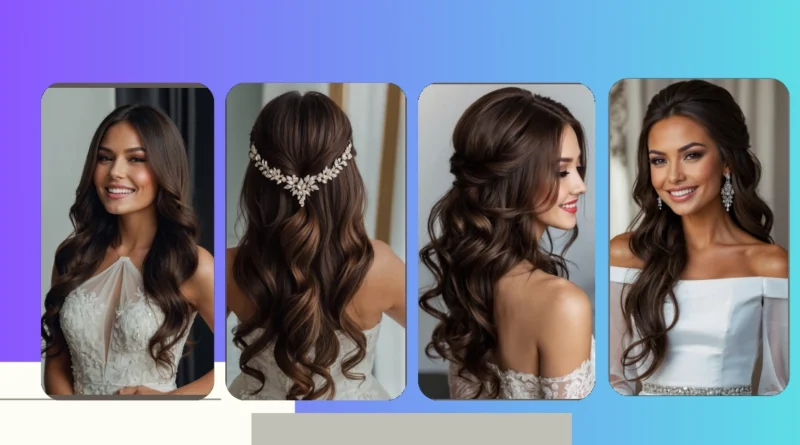 This hairstyle is like a fairytale come to life! Imagine getting ready for your big day, and your hair looks absolutely stunning. This “bridal half up half down” style is the perfect mix of elegance and fun. It’s got that romantic, flowing look in the back, but the top is neatly styled so you’ll look amazing from every angle—especially that front view! It’s the kind of hair that makes you feel like a princess, without having to actually wear a tiara (unless you want to, of course!).