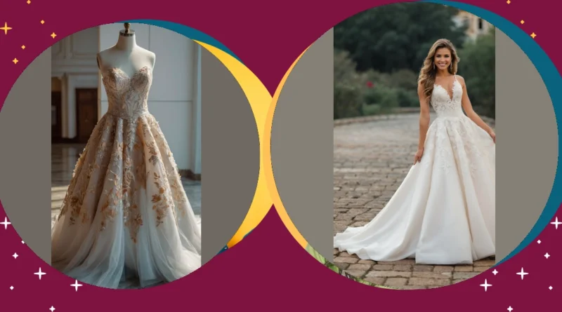 This gorgeous gown proves that wedding dresses don’t have to be boring old white! Look at all those pretty details – it’s like a fairytale dress got a super cool makeover. Imagine walking down the aisle in this, feeling like a princess who just raided her grandma’s best lace tablecloth and somehow made it look absolutely stunning. Forget plain white, this is a dress that whispers elegance and shouts “party!”