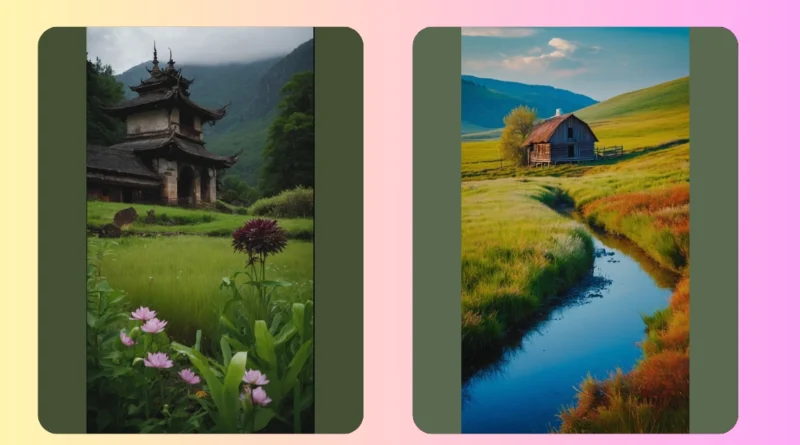 This picture is like a scene straight out of a movie! It looks like something from a mystical adventure story, but with a twist. We have this ancient-looking temple in the middle of a beautiful, lush landscape with green mountains in the distance. It’s almost like the temple is a time capsule, reminding us of the past, while the nature around it is all about the present.