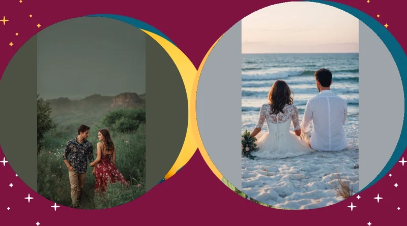 Talk about a glow-up! This couple has clearly mastered the art of looking effortlessly stunning while surrounded by, oh, just the entire Milky Way and a killer sunset over the ocean. You know they probably spent a good hour trying to find the perfect spot where the grass wasn’t too poky, and where no one accidentally photobombed their cosmic date night. This isn’t just a picture; it’s peak ‘couple goals’ that will make all your friends double-tap faster than you can say ‘galaxy.’ Who needs a fancy restaurant when you have literally all the stars watching you?
