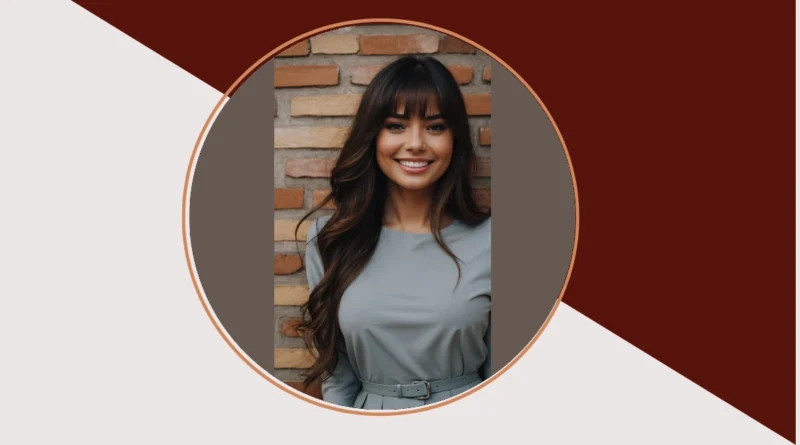 This girl has the best hair! It’s long and flowing, and she’s rocking a cute messy bun with some serious bangs. You know when your hair is getting a little long and you’re not sure what to do with it? Well, she’s got the perfect solution! It’s like she’s saying, “I woke up like this, but I also took a minute to make this look amazing.” It’s totally achievable, and you can definitely copy her style. Plus, she’s got a smile that could light up a room!