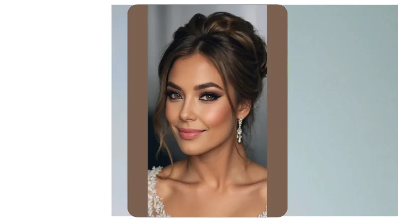 This bride-to-be is looking like a total princess! Her hair is styled up in a gorgeous updo that’s like a crown on her head, and it looks super fancy with all those curls and twists. You could totally picture her walking down the aisle with all eyes on her, right? It’s like a fairytale come to life!