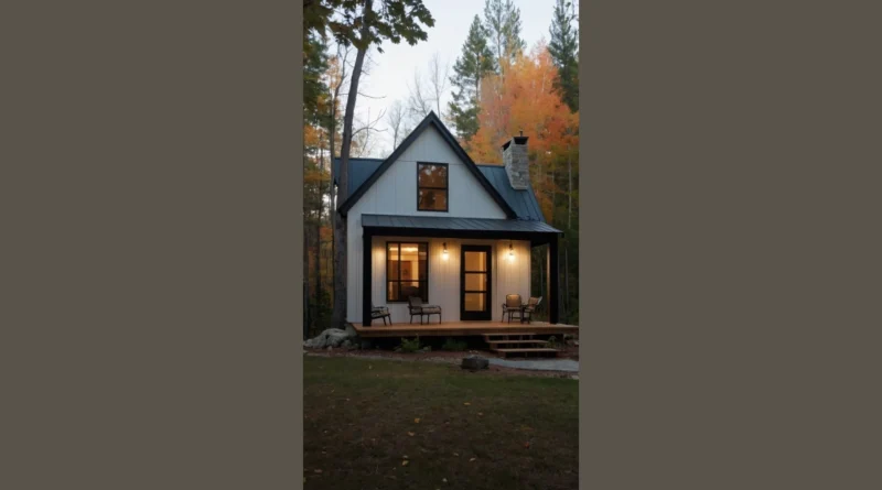 Check out this awesome cabin house! Imagine yourself relaxing on that deck, sipping hot cocoa (or maybe something a little stronger if you’re old enough!), while the leaves change color all around you. It’s like something straight out of a fairytale, but way more stylish. This isn’t your grandma’s rustic cabin; it’s modern and comfy, with huge windows to let all that beautiful fall scenery flood in. Seriously, who wouldn’t want to spend a weekend (or a lifetime!) here?