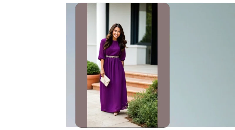 This gorgeous purple dress is practically screaming “wedding guest done right!” With its flowy fabric and those fun, slightly puffy sleeves, you’ll look totally chic without feeling like you’re trying too hard. The sparkly belt is the perfect touch, adding a bit of glam that says, “Yes, I know how to accessorize,” while still keeping it classy enough not to upstage the bride (a key rule of wedding etiquette, as you know!). Plus, a maxi dress means you can totally hide those comfy flats you swapped into after an hour of heels. Shhh, it’s our secret!