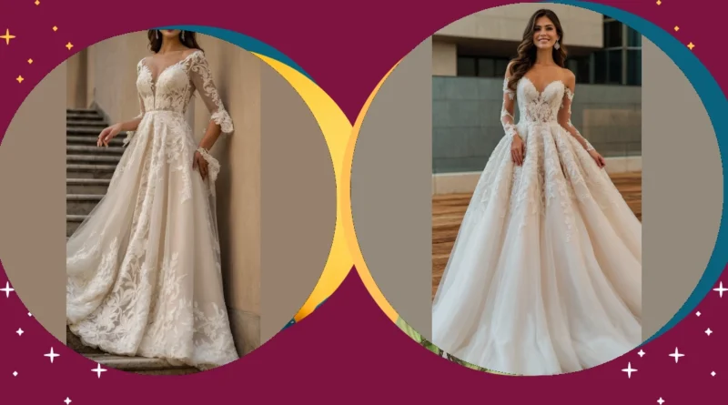 Wow, check out this bridal gown! It’s like something out of a fairytale, but way cooler. The long sleeves are super elegant, and that gorgeous lace bodice is giving us all the heart-eye emojis. It’s like a princess meets a rockstar – totally stunning and definitely not your grandma’s wedding dress. With all the new bridal dress designs coming out, this one is seriously a standout. This dress is perfect for anyone who wants to feel amazing and confident on their big day, without looking like they’re going to a royal ball.