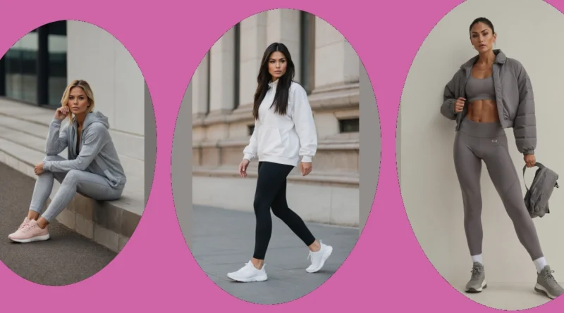 Our friend in the picture is absolutely owning the activewear game, making that grey matching set look effortlessly cool. It’s the kind of outfit that whispers, “I could totally crush a workout right now, but I’m also perfectly content just sitting here looking thoughtful.” With those sharp pink sneakers adding a pop of color, she’s showing us that comfy clothes don’t have to mean sacrificing style. You get that amazing stretchy feeling of leggings and a hoodie, perfect for everything from chasing your goals to chasing the ice cream truck.