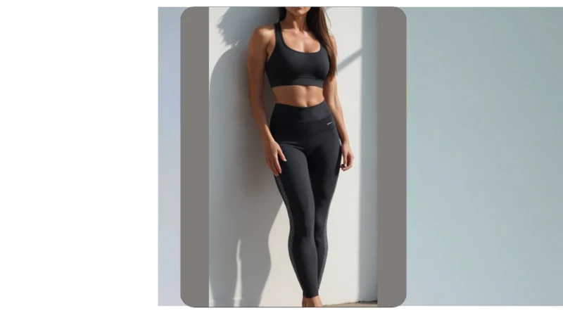 So, you’ve got your activewear on, looking all sleek and ready for action, just like in this picture! Those black leggings with the cool patterned stripe down the side and that matching sports bra? Total vibe. It’s the kind of outfit that makes you feel like you could totally run a marathon, nail a tricky yoga pose, or at least conquer that pile of homework with some serious athletic focus. The best part is how comfy it looks, making sure you feel supported whether you’re actually doing burpees or just browsing snacks in the pantry.