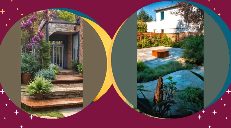And how cool is that circular stone planter with the fancy tree right in the middle? It looks like it’s posing for a photoshoot, probably dreaming of being on the cover of “Gardens & Gnomes Monthly.” This kind of backyard makeover proves that you don’t need a huge space to create something stunning. Adding different levels, textures like those smooth stones, and a mix of plants makes your outdoor area feel like a secret escape, perfect for pretending you’re far away from homework, even if you’re just a few steps from the kitchen.