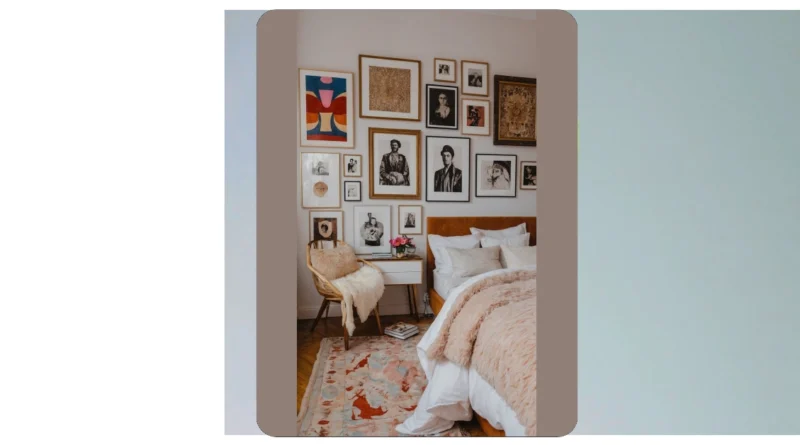 Wow, this bedroom totally missed the memo on “less is more”! Instead, it went full-on “more is WAY more,” and honestly, we’re completely here for it. Look at that wall – it’s like a museum decided to throw a party and invited every single one of its coolest art pieces. From the abstract splashes of color to those seriously intense black and white portraits staring back, it’s a maximalist dream. You might need a map (or at least a really long pointer stick) just to take it all in, but hey, at least you’ll never be bored trying to count all the frames before falling asleep!