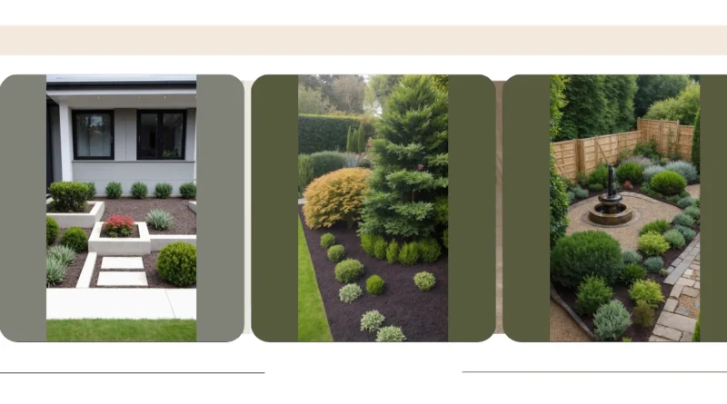 This front garden landscape isn’t just a bunch of greenery; it’s practically a VIP lounge for plants, welcoming everyone to the coolest house on the block! You’ve got the massive, towering green tree standing guard, probably whispering secrets to the clouds. Then there’s the vibrant golden bush, looking like it just stepped out of a salon, ready to glow for its close-up. All these plant personalities come together to create a super inviting vibe, proving that your home’s first impression can be as fun and friendly as a garden full of chatterbox bushes. It’s like these plants are having a permanent, well-organized party right out front!