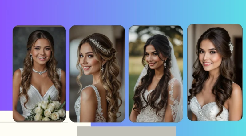 That half-up, half-down look is totally a winner, letting those shiny curls cascade over her shoulders while keeping everything neat enough for all those happy tears (and maybe a few clumsy dance moves later!). It totally brings out her gorgeous necklace and those sparkling earrings too, making the whole vibe super elegant but still fun. So if you’re planning a wedding for 2025, or just daydreaming about future glam, this style proves you can look like a total queen without needing a helmet of hairspray or worrying about a rogue strand deciding to go on an adventure mid-ceremony!