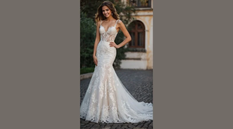 This dress is basically a superhero costume for weddings, minus the cape (though it certainly looks like it could have one!). It hugs you in all the right places, making you feel like a total boss, but without that “can’t breathe” feeling. You can practically hear the model thinking, “Yep, I woke up like this, looking fabulous and ready to conquer the aisle!” This fit-and-flare style is all about showing off your amazing self before it does a graceful little dance down to your feet. It’s giving main character energy, for sure!
