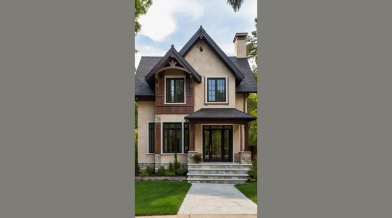 Check out this house! It’s like something straight out of a storybook, but with way cooler windows. I bet it looks amazing all lit up at night. It’s got this old-school charm with the stone and wood, like if your grandma’s house went to finishing school and learned how to be super stylish. It is a pretty classic look!