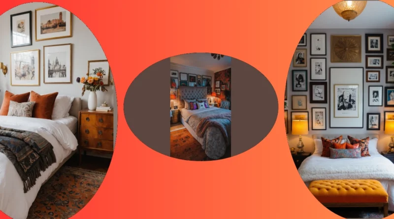 But this isn’t just about piling things up; it’s about making every corner feel like a cool secret. Look at that gallery wall above the bed – it’s like your own personal art show, with amazing colors that make the room feel super chic and a little mysterious, in the best way possible. The rich oranges and deep blues aren’t just colors; they’re like a mood ring for your bedroom, always set to “awesome and cozy.” It’s the kind of place where you could spend hours chilling, doing homework (maybe!), or just dreaming up your next big adventure, feeling totally epic.