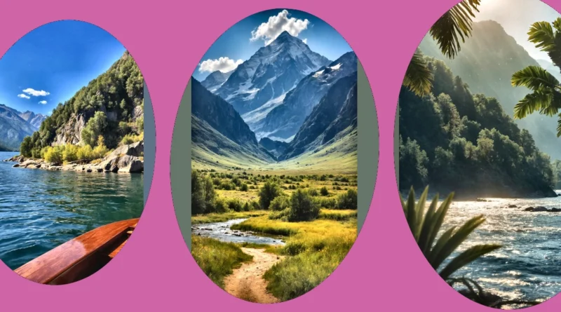 And check out that water! It’s practically winking at you with all those shimmering reflections, making the whole scene look like a high-budget fantasy movie set. Those cool tropical leaves framing the shot are just showing off, adding that extra layer of ‘wish I was there right now’ energy. Forget about quadratic equations or the history of ancient civilizations for a second; this picture is proof that sometimes, you just need a perfect mix of majestic mountains and sparkling rivers to make your brain feel instantly refreshed. It’s basically nature’s way of saying, “Take a chill pill, kiddo, and enjoy the view!”