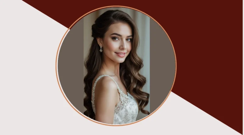 Look at this bride totally owning her big day with a hairstyle that’s basically the gold standard of “I woke up like this, but also had a fairy godmother stylist.” Her beautiful brown hair is gracefully swept half-up, half-down, showcasing those perfect bouncy waves that spill over her shoulders like a gorgeous waterfall. It’s the kind of classic bridal look that’s both elegant and fun, proving you can look absolutely stunning without needing a gravity-defying hair sculpture. Plus, that tiny white flower tucked in? It’s like the secret sparkle that makes everything just *pop*, ensuring she’ll look amazing in photos for decades to come, unlike those questionable fashion choices we all made in middle school!
