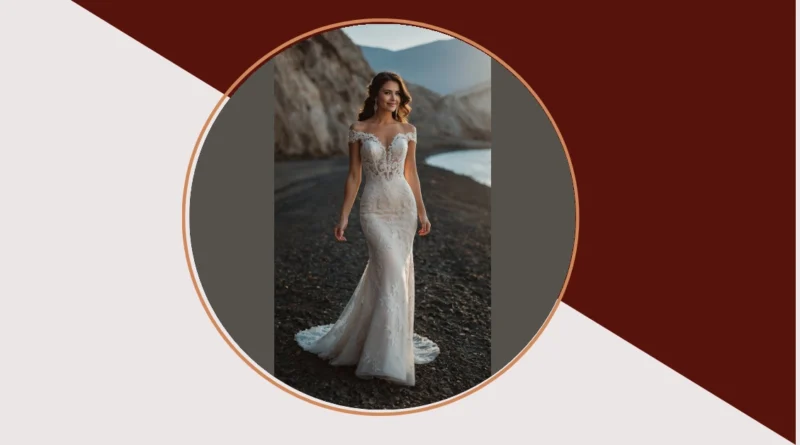 This stunning white dress really makes a statement, looking like something a celebrity would wear on their big day – definitely a contender for a ‘top wedding dress’ list! With that sleek fit and gorgeous lace bodice, it’s giving off major “I woke up like this, flawless” vibes. You just know whoever wears this is going to float down the aisle feeling like a queen, probably ready to perfectly pose for a million photos, even if their inner monologue is secretly screaming, “Don’t trip! Don’t trip!”