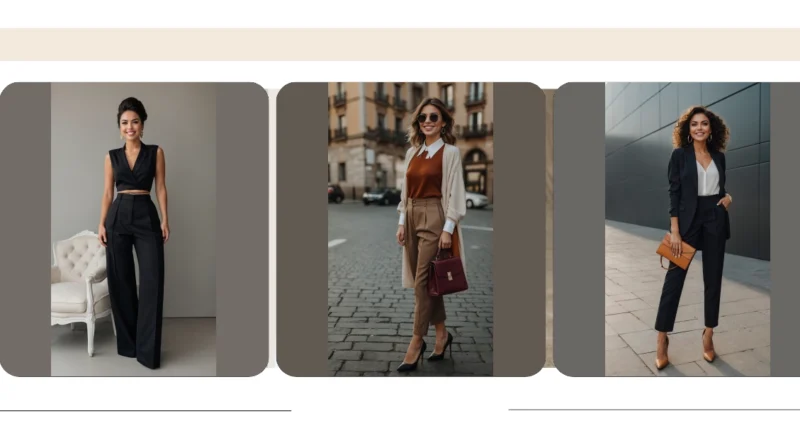 Looking at this awesome outfit, it’s like these pants are ready to march into a boardroom and demand snacks. Those wide-leg trousers just scream confidence, and when you pair them with that sharp little sleeveless vest, it’s the perfect mix of “I know what I’m doing” and “I’m not boring!” It makes you think that professional work outfits don’t have to be stuffy; they can actually look pretty cool and make you feel ready for anything.