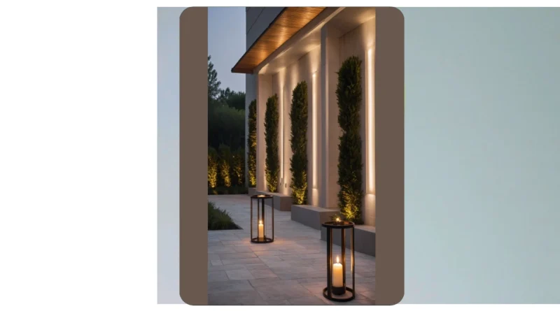 But wait, there’s more! Down on the ground, those stylish lanterns are doing their part, adding little pockets of warmth that make the whole scene feel extra cozy. You could totally imagine hanging out here with a hot chocolate, feeling all fancy and bright, even if it’s chilly enough to see your breath. This setup is so welcoming, you might just convince your friends to ditch the screens and come admire your ridiculously well-lit, festive outdoor space.