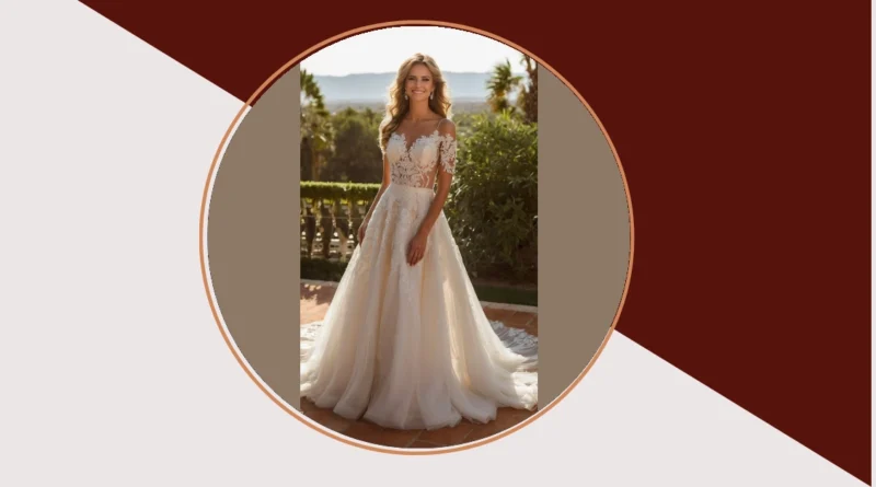 Forget the plain white dress—this one’s giving “fairytale princess meets modern chic.” The delicate lace and soft champagne color are beyond dreamy. Plus, it’s got that perfect balance of being fancy enough for a super special day, but also comfortable enough to dance the night away. This dress is a total win; it’s like the best of both worlds: classic and trendy, dreamy and practical!