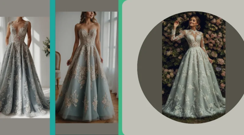 Who says wedding dresses have to be white? This stunning gown proves that adding a splash of color is totally the way to go if you want to stand out and show off your personality. Forget blending in; this gorgeous blue-grey number, complete with intricate lace and floral details, looks like something straight out of a fairytale, but way cooler. It’s perfect for a bride who wants to say “I do” with a dress that’s as unique and vibrant as she is, maybe even making the wedding guests do a double-take – in a good way, of course!