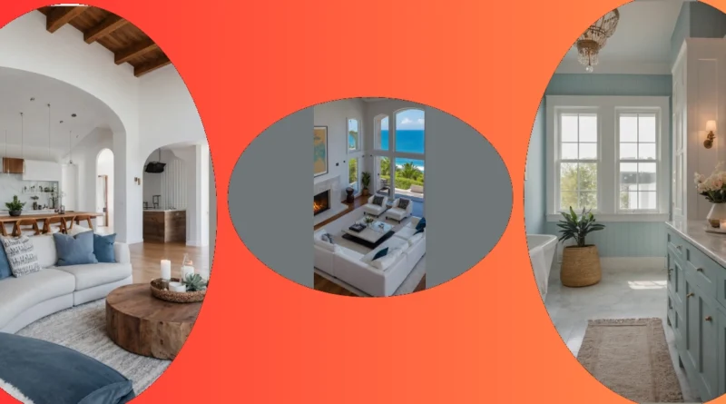 Forget anything stiff or boring; this room is pure relaxation goals! The soft blues and peachy tones on the cushions are like a gentle high-five to the calm water and clear skies outside, making everything feel light and happy. That big, squishy white sofa looks so comfy, you’d probably have to set an alarm to remind yourself to stand up again! The leafy green plants are like cheerful roommates, adding a fresh, lively feel that makes you want to stay all day. It’s the perfect spot to curl up with a good book, spill the tea with friends, or just gaze out at the view and pretend you’re sailing away on a grand adventure. This living space truly understands the art of doing nothing beautifully.