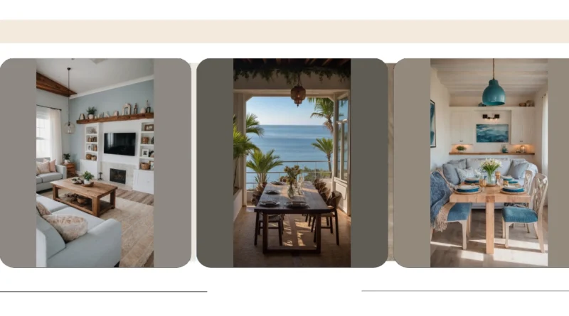Forget anything stiff or boring; this room is pure relaxation goals! The soft blues and peachy tones on the cushions are like a gentle high-five to the calm water and clear skies outside, making everything feel light and happy. That big, squishy white sofa looks so comfy, you’d probably have to set an alarm to remind yourself to stand up again! The leafy green plants are like cheerful roommates, adding a fresh, lively feel that makes you want to stay all day. It’s the perfect spot to curl up with a good book, spill the tea with friends, or just gaze out at the view and pretend you’re sailing away on a grand adventure. This living space truly understands the art of doing nothing beautifully.
