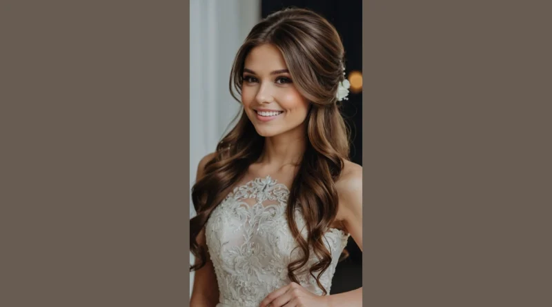 Whoa, that hairstyle is like a total boss move! It’s like saying, “Yeah, I woke up like this… ready to get married!” The half-up, half-down thing is perfect because you get the elegance of an updo, but still have some flowy curls to show off. Plus, the way they styled it is so fancy, it totally makes you look like you could be starring in your own fairytale wedding movie.