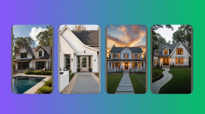 Beyond the wild roof antics, this house is serving up some serious style points. Those big, bright grey doors practically beg you to waltz right in, probably promising snacks and excellent Wi-Fi. The mix of the crisp white siding with the cool, light stone gives it this super fresh look, like it just walked out of a magazine, but not in a snobby way – more like ‘come hang out’ way. It’s the kind of craftsmanship that makes a house feel solid and welcoming, with thoughtful touches like those cute little plants by the door. You can just tell a lot of care went into designing a home where every detail, from the stonework to that fancy walkway, says, “Welcome to awesome!”