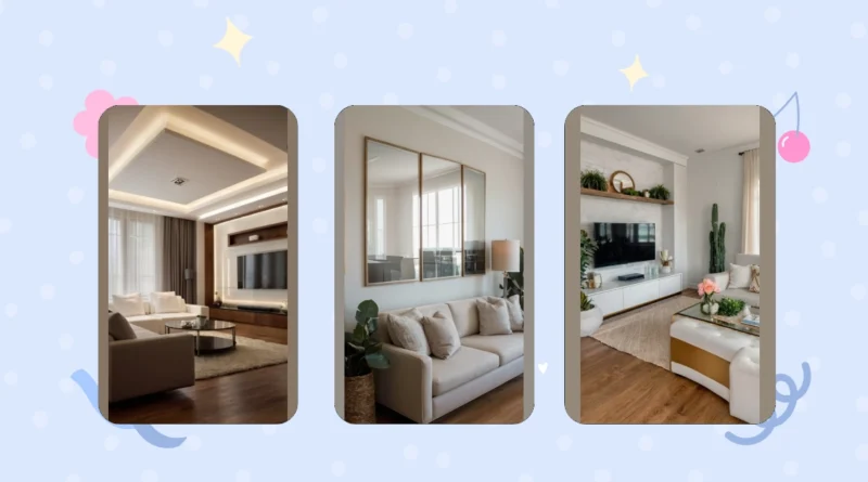 The white and gold accents give off major “fancy but not stuffy” vibes. The shelf above the TV is pure genius. The room shows a balance of sophistication, comfort, and a healthy dose of “I totally have my life together… mostly!” Now, if only this picture came with instructions on how to keep all those plants alive!