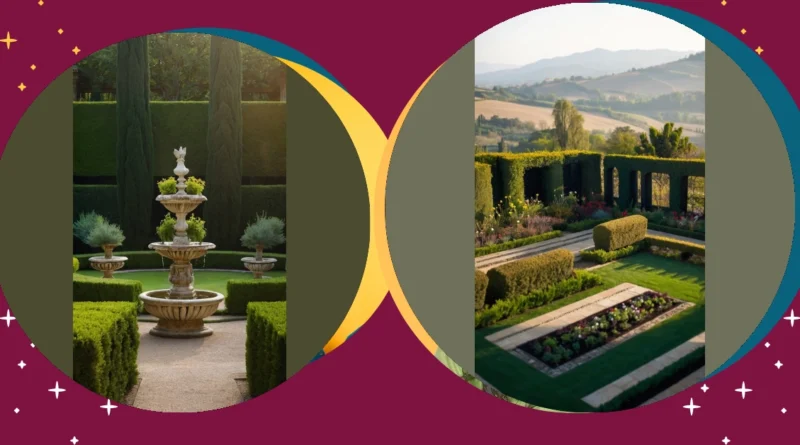 This Italian garden is giving off serious movie vibes! I mean, imagine sipping some sparkling water and having a super deep conversation right next to that fountain. The bushes are so perfectly trimmed, they look like they’re in formation, ready to march. It’s so structured and fancy that it makes you wonder if you’d have to dress up to even walk in it. Maybe a tiny, tiny crown?