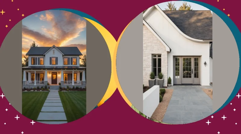 Beyond the wild roof antics, this house is serving up some serious style points. Those big, bright grey doors practically beg you to waltz right in, probably promising snacks and excellent Wi-Fi. The mix of the crisp white siding with the cool, light stone gives it this super fresh look, like it just walked out of a magazine, but not in a snobby way – more like ‘come hang out’ way. It’s the kind of craftsmanship that makes a house feel solid and welcoming, with thoughtful touches like those cute little plants by the door. You can just tell a lot of care went into designing a home where every detail, from the stonework to that fancy walkway, says, “Welcome to awesome!”