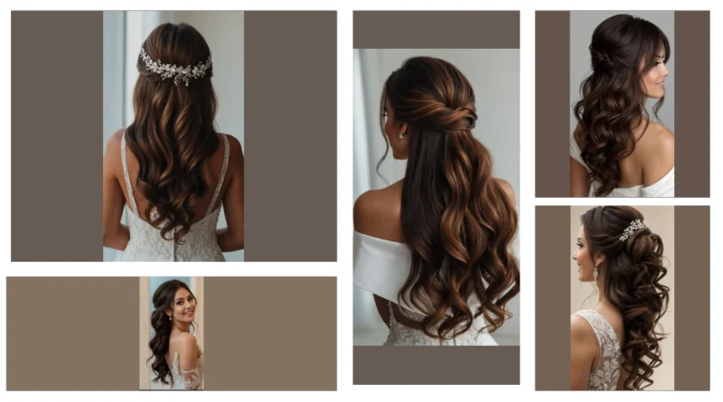 Okay, picture this: you’re a bride, but you don’t want to look like a princess locked in a tower. Maybe you’re more of a “chill vibes” kind of gal, right? Well, good news! You can totally rock a super cute, down bridal hairstyle that’s totally on-trend and, dare we say, way more comfortable than a super tight updo. This hairstyle, with its loose waves and soft bun, is like the cool, confident cousin of the classic updo. It’s like saying, “I’m ready to party, but I’m not gonna sacrifice comfort for style.”