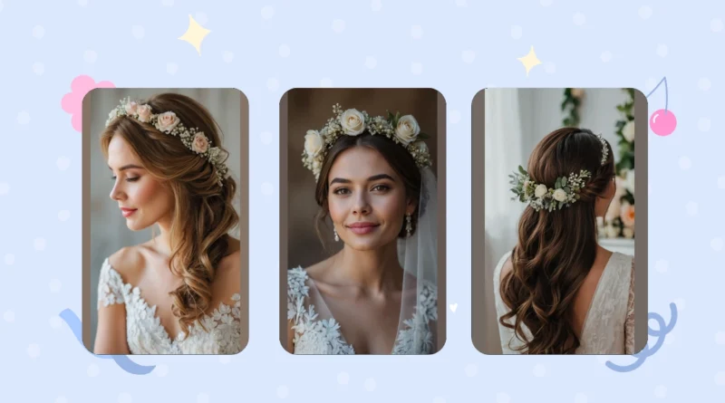 Let’s talk floral crowns, the bridal accessory that turns every hairstyle into a work of art! You know what they say – “a bride is never fully dressed without her flowers!” And from chic updos to breezy half-up styles, there’s a floral crown hairstyle that’s as unique as your love story. So whether you’re flowing with long hair, rocking a stylish bob, or somewhere in between, we’re ready to crown you with inspirations!