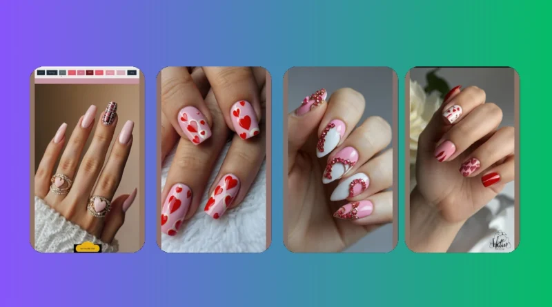 These Valentine’s Day nail designs are seriously cute! From tiny hearts scattered across a pretty pink base to a glittery heart explosion, there’s something for everyone. Even the simple red nails add a touch of classic Valentine’s flair. Whether you’re into subtle romance or bold statements, these designs are perfect for showing off your Valentine’s spirit. You could even try mixing and matching different designs on each nail for a truly unique look!