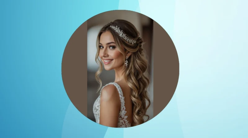 Planning your look for that big day, even if it’s way off in 2025, means looking at hairstyles that scream ‘wow!’ just like this one. Forget those stiff updos from your grandma’s photos; this style is all about effortless glam with those perfect loose waves tumbling down, making you look like you just stepped out of a fairy tale – or maybe just a really good salon. Plus, that sparkly leaf-like headpiece? It’s basically a crown without being *too* much, adding just the right amount of shimmer to catch every eye and make your hair sparkle more than your algebra teacher’s enthusiasm on a Monday.