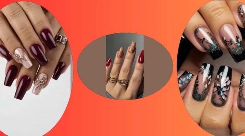 Let’s kick off with how these nails are absolutely slaying! Check out these super sharp coffin nails, rocking that deep, glossy maroon tip in a cool V-shape. Don’t let the name ‘coffin’ fool you into thinking they’re spooky; it just means they’ve got that awesome, long, straight-sided look that’s totally trending. These aren’t just nails; they’re a whole mood, perfect for when you want to feel a little edgy but still super classy, maybe even like you’re about to run the world… or at least ace that pop quiz.