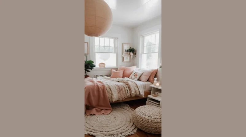 This bedroom is seriously giving us major cozy vibes! Imagine snuggling up in that fluffy, pastel-colored blanket, maybe with a good book and a hot chocolate. The whole room feels super chill, like a cloud of pink and beige happiness. It’s proof that cute room ideas don’t have to be complicated – just a few comfy textures and soft colors, and suddenly your room feels like a peaceful oasis. Even the giant paper lantern looks like a marshmallow!