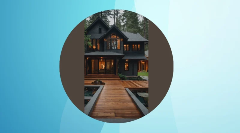 This house is so dark it’s basically a spooky mansion, but in a good way! Imagine walking up to the front door, surrounded by tall trees and the soft glow of the warm lights inside. It’s like a scene from a fairytale, but instead of a princess, there’s probably a cool teenager inside listening to music and chilling with their friends.