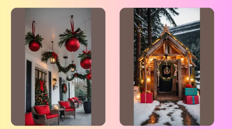 Who needs to huddle indoors when your porch looks this good? Those comfy chairs with the bright red cushions are practically screaming “come sit here and sip something warm!” And check out those candles on the table – they’re basically tiny, adorable campfires, minus the smoke and the s’mores debate (unless you bring your own, of course). This whole outdoor Christmas setup is perfect for pretending you’re in a fancy holiday movie, even if you’re just gossiping with friends or scrolling through TikTok. It’s so inviting, you might even forget it’s technically “outside” until a snowflake lands right on your nose!