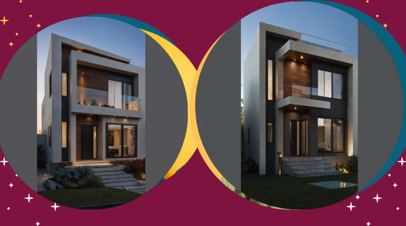 The image shows a house that’s seriously stylish! It’s all sleek lines and cool colors, and those steps just scream “welcome to the good life.” The house looks super modern with its big windows and the dark wood accents. You can practically imagine yourself strolling up those steps, feeling like a movie star ready for the red carpet.
