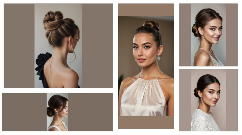 This look is basically the masterclass in making your hair appear totally chill while screaming “I’m ready for my close-up!” The high bun in the image, much like the ones Sofia Richie rocks, has that perfect ‘just-threw-it-up-there’ vibe, but somehow it’s still neat enough to attend a fancy gala. It’s like it’s subtly telling everyone, “Yeah, I probably spent five minutes on this, but let’s not ask about the other hour I spent getting this eyeliner perfect!” We all know the real struggle of trying to achieve that effortlessly messy bun that actually looks good and not like you just wrestled a small animal on your head. This one definitely nails it!