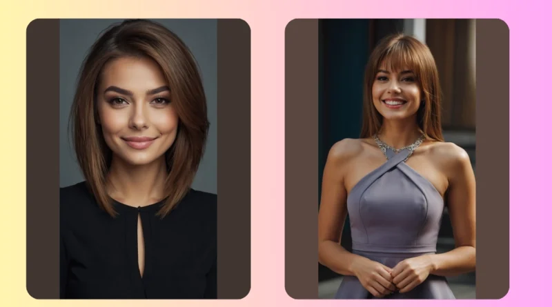 The woman in the picture is rocking a super cute mid-length bob. It’s a classic style that never goes out of fashion, and it looks amazing on her. Plus, her bangs are perfectly framing her face and highlighting her beautiful eyes. You could totally picture her as the cool girl at school, the one who always knows what’s up.