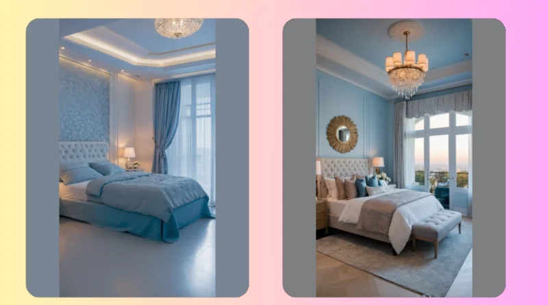 Get ready to dive headfirst into a sea of calm, because this bedroom is absolutely drenched in the most soothing shade of blue! It’s not just the walls; even the ceiling got the memo, creating a vibe so serene it feels like sleeping inside a fluffy, upscale cloud. This ‘color drenching’ trend totally works here, making the whole room feel like one big, cozy hug. Forget boring beige; this blue sets a perfectly ‘moody’ (in a good way!) scene for feeling extra fancy, maybe even like royalty, all while secretly planning your next Netflix binge.