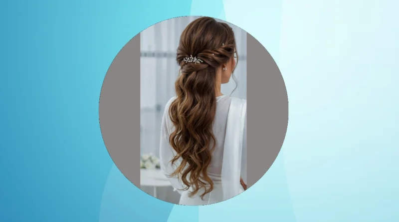 This hairstyle is totally drop-dead gorgeous, right? Imagine walking down the aisle with hair this amazing – all those luscious waves, and that sparkly hairpiece? You’d practically be glowing! It’s the kind of wedding hair that makes everyone say “Wow!” It’s fancy enough for a princess but still looks totally natural and pretty. This look is perfect if you want something elegant, but also a bit fun and flirty, kinda like a sparkly unicorn who’s ready for the best day ever!