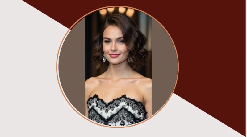 This picture shows a seriously elegant hairstyle—perfect for a fancy party or even a school dance if you’re feeling extra glam! It’s that perfect medium length, not too short, not too long, and it’s got these gorgeous waves that look like they took about five seconds to style (but we all know better, right?). It’s totally formal, without being stuffy or boring, like a fancy dress but still you. Imagine yourself rocking this look, feeling like a total queen!