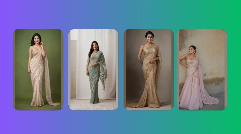Just look at all that gorgeous sparkle and delicate embroidery! This whole ensemble, with its show-stopping saree blouse, reminds me of when you try to bake a fancy cake and it actually turns out looking even better than the picture. It’s got that perfect blend of traditional elegance and modern chic, proving that a little bit of sheer, gold-embroidered fabric can go a long, long way. You could totally wear this and feel like royalty, and then casually tell your friends, “Oh, this old thing?” while secretly knowing you’re the best dressed person in the room.