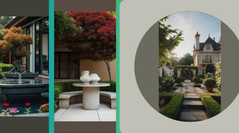That fancy red tree is probably thinking, “I’m the star of this garden. Look at my beautiful red leaves! Everyone always compliments my fiery glow.” But let’s be honest, the tree is kinda showing off. The elegant vases are more subdued and classy, and they make the whole garden look more balanced. They’re just quietly rocking their stylish look, not trying to be the center of attention. They’re the kind of garden décor that just makes you want to take a deep breath and relax.