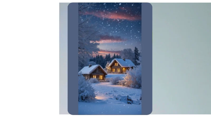 Well, hello there, November! This picture totally skipped Thanksgiving and went straight for the full-blown winter wonderland vibe, didn’t it? It’s like Mother Nature decided to dump a giant bag of marshmallows all over these adorable cabins, just so we’d have the perfect excuse to stay inside with a ridiculously big mug of hot chocolate. Those trees are already sparkling, and the sky looks like someone painted it with cotton candy colours, proving that even early winter knows how to put on a show before the serious snow hits.