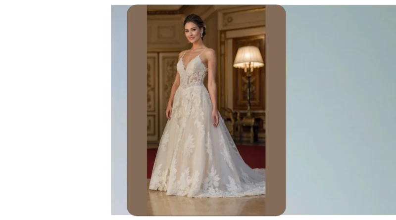 Wow, check out that dress! It’s like something straight out of a princess movie, all lacy and flowy. It’s totally giving off those “white wedding dresses” vibes, but with a seriously fancy upgrade. Imagine how amazing it would look twirling around a dance floor, or even just posing for pictures. It’s so detailed, you could probably spend hours examining all the pretty little flowers and designs. This dress isn’t just a dress, it’s a work of art, ready to make any bride feel like royalty on her big day!